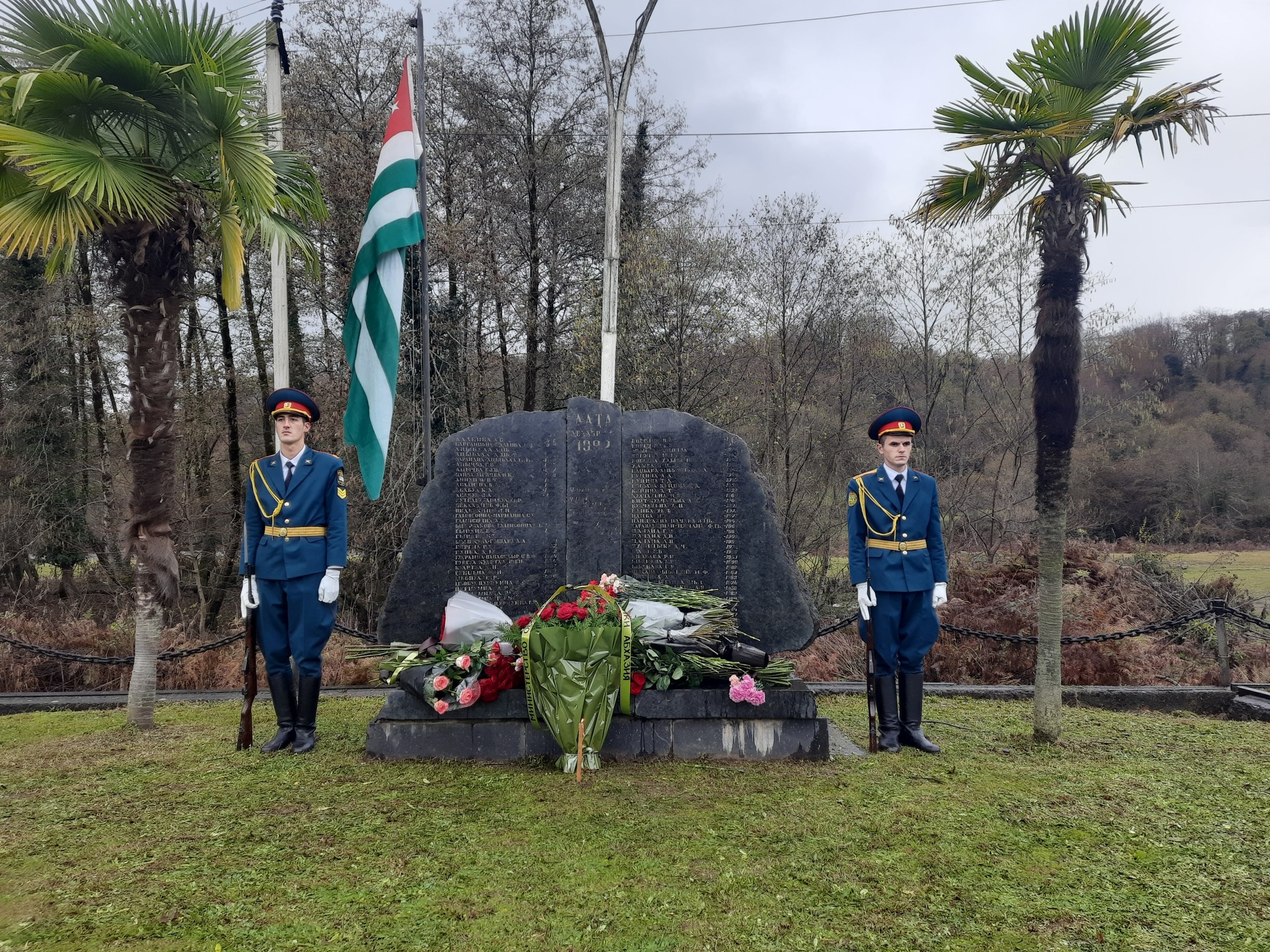 Сегодня траурные митинги проходят на месте трагедии, в селе Лата, в городе-герое Ткуарчал, в городе-герое Гудаута, у Мемориала памяти жертвам Латской трагедии.