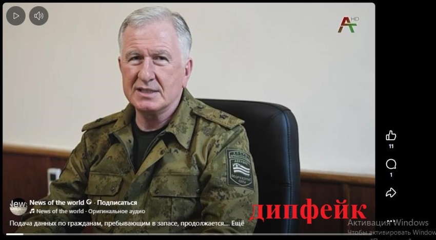 Внимание! В социальных сетях и мессенджерах зафиксировано распространение видеоролика, на котором военный комиссар Республики Абхазия «делает заявление о сборе данных по гражданам, пребывающим в запасе».