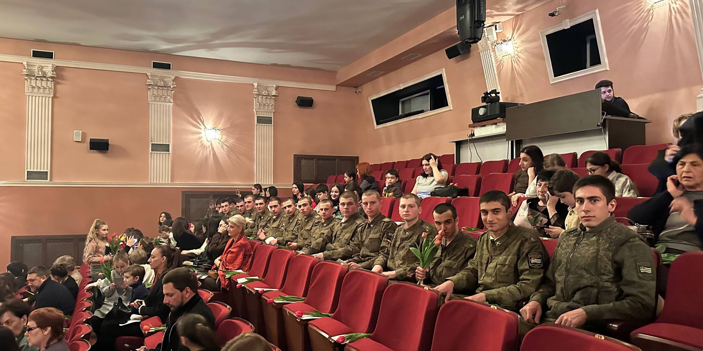 Среди зрителей – руководство Министерства обороны во главе с министром и будущие офицеры, курсанты Сухумского ВОКУ.